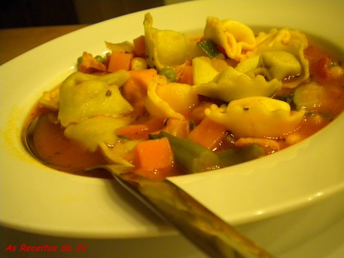 Esta sopa é uma variação da Minestrone que em tempos publiquei aqui no blog. É muito simples de confeccionar, e servida com um Pãozinho com Alho (de compra que eu então já não estou para muitas "mariquices') fica que é uma maravilha e só por si faz uma refeição de se lhe tirar o chapéu. Com esta receita vou ver se ainda vou a tempo de participar no passatempo Festival das Sopas, organizado pelo blog Delícias & Companhia, que tem como autora a minha amiga Manuela. Se já não fôr a tempo, paciência, pelo menos fica aqui o registo.